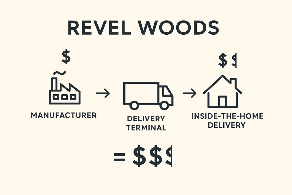 Traditional flooring distribution is filled with inefficiencies, high overhead and unnecessary costs. At Revel Woods, we’re cutting out the middlemen and streamlining the supply chain to focus on what really matters — delivering better service to you. That means faster turnaround times, inside delivery*, and high-quality flooring at a lower price than the outdated, conventional model.
