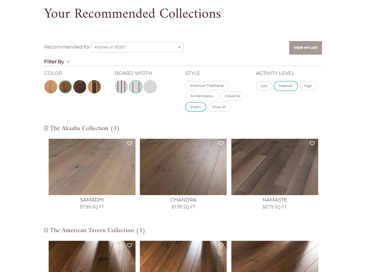 Once you have the results for your space, life gets easier if you create an account (and who wouldn’t want an easier life?). All you need is an email address. From there you can save floors to your favorite list for easy comparison, as well as save your results if you want to leave and come back later without having to start over.